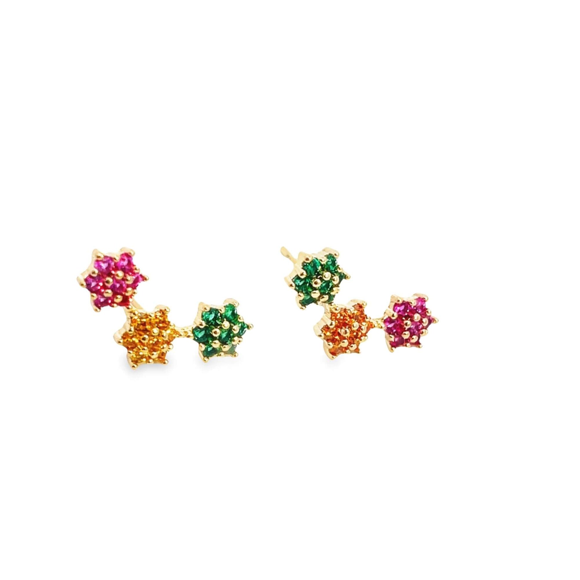 18K Gold Filled CZ Flower Star 3 Layer Constellation Stud Earrings