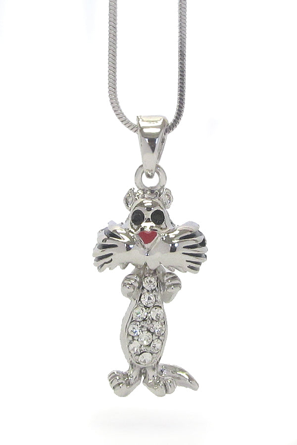MADE IN KOREA WHITEGOLD PLATING CRYSTAL STUD CUTE TIGER PENDANT NECKLACE : Size- 15 X 35 MM 18 INCHES : Color- SL