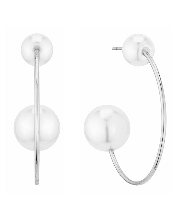 PEARL HOOP EARRING : Size- 1 1/4 X 1 1/4 INCHES : Color- CRM-SIL