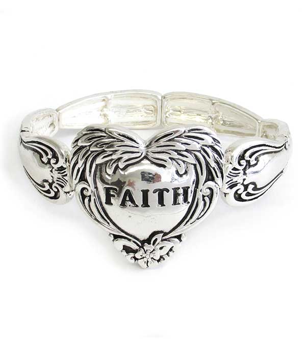 RELIGIOUS INSPIRATION UTENSIL SPOON STRETCH BRACELET - HEART : Size- TH 1 1/4 INCHES STRETCH : Color- AS